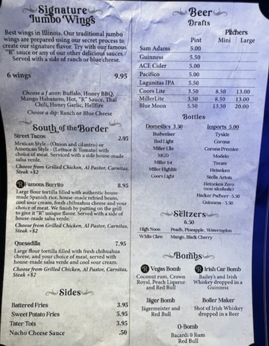 R Place - Melrose Park Menu